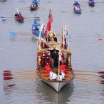 Lord Mayor of London Fiona Woolf waves from the Gloriana row barge @LMAppeal pic.twitter.com/ZXNRWrMsDU