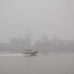 ThamesPics .@RoyalNavy HMS ST ALBANS arrives on a foggy Thames this afternoon with @MPSonthewater accompanying pic.twitter.com/L63jHROdyo