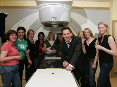 Jeremy Milnes celebrates the opening with radiographers from Guy's and St Thomas'