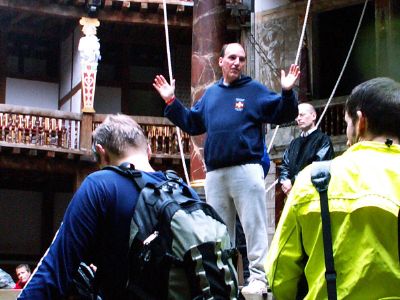 Southwark and Lambeth's London Assembly member Val Shawcross arrived at the Globe riding a GLA pool bike