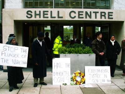 A silent demonstration was held outside the Shell Centre on Thursday morning to mark the tenth anniversary of the death of Nigerian writer and artist Ken Saro-Wiwa. Later a memorial event was held on the riverside walkway.