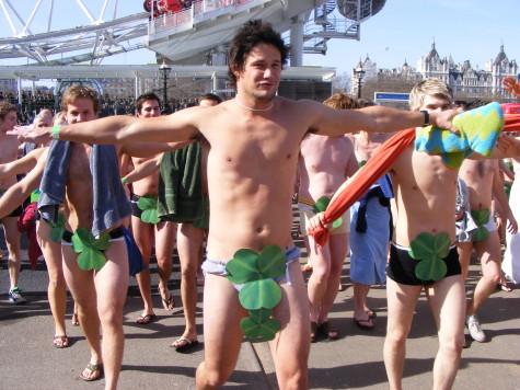 Participants gathered on Sunday morning at the Park Plaza Riverbank hotel on Albert Embankment to receive their instructions – and cardboard shamrocks to protect their modesty.