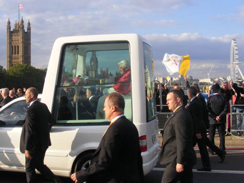 The Pope left Lambeth Palace by Popemobile to make the short journey across Lambeth Bridge to Westminster Hall.