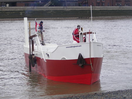 'The Boat that Walked' left Sandwich Marina in Kent last Saturday to sail up the Thames.
