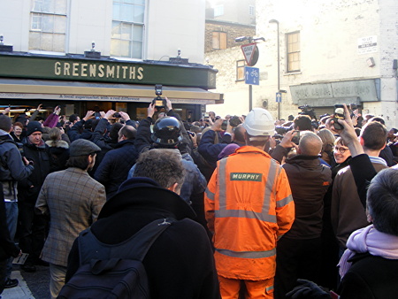 On leaving Greensmiths the prince walked through the market accompanied by Prince's Foundation ambassador Kirstie Allsop and Waterloo Quarter BID operations director Helen Santer.