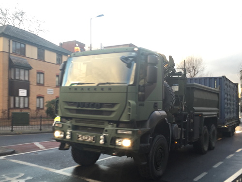 Police motorcycle outriders accompanied the military truck as it made its way along Grange Road, Dunton Road, Mandela Way, Humphrey Street and Old Kent Road.