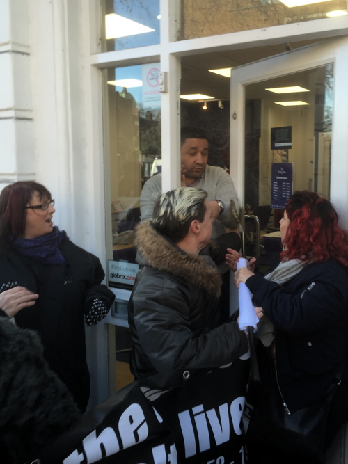 Staff shut the door as activists tried to enter the shop.