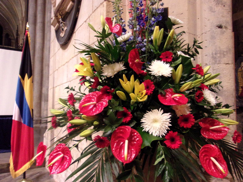 The cathedral was decorated with the national flags and the service ended with the singing of all three verses of the national anthem 'Fair Antigua and Barbuda'.
