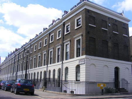 Garden square with Henry Wood Hall (the former Holy Trinity Church) at its centre.